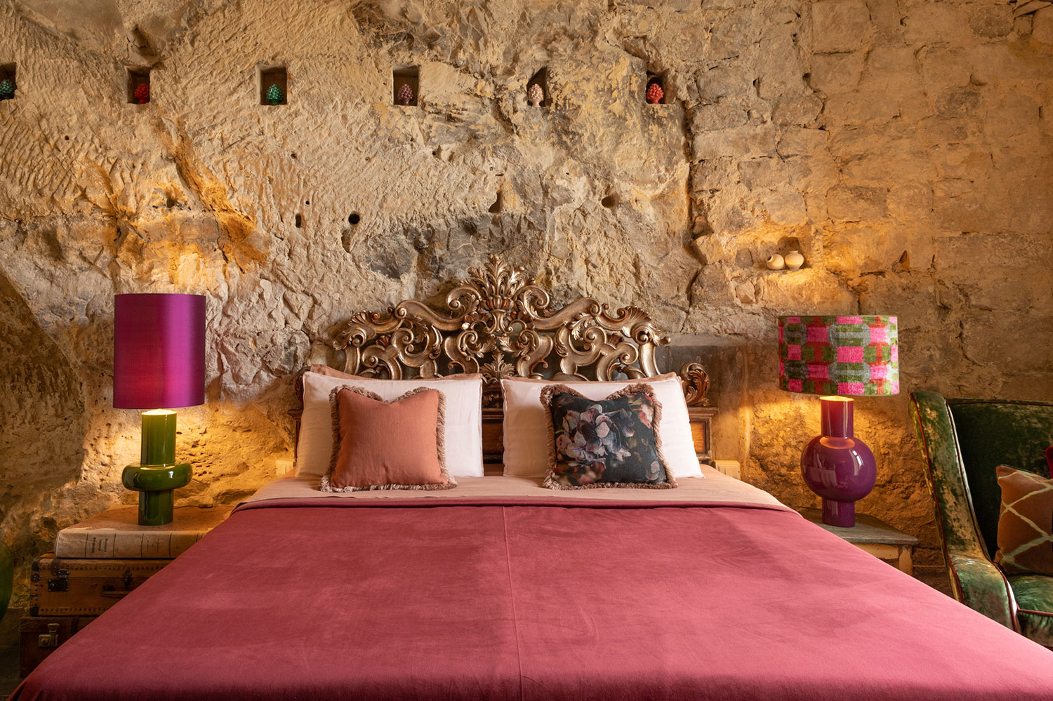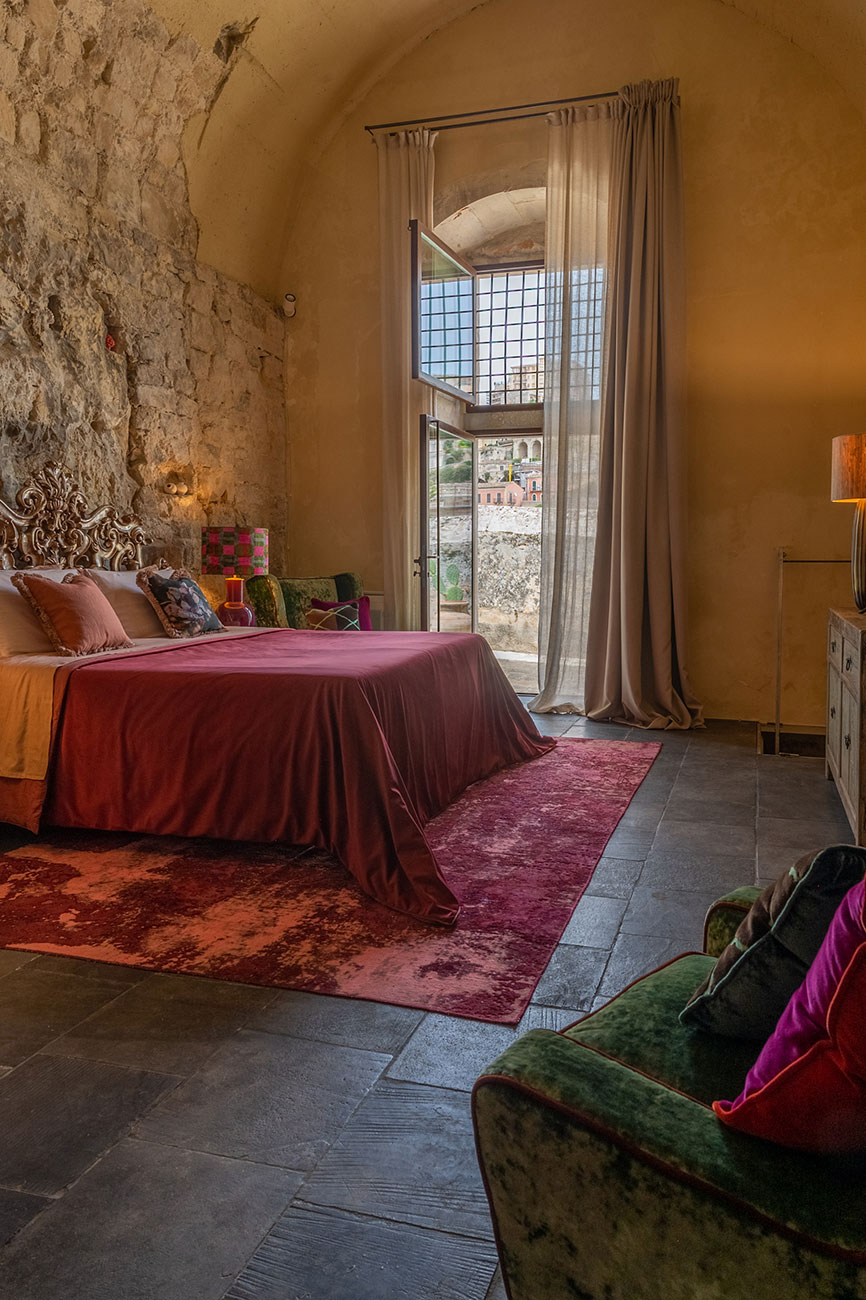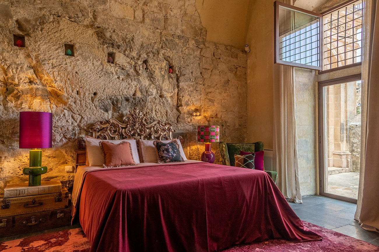 La nostra prima Suite è un’opera d’arte ricavata nella famosa pietra millenaria di Modica, arredata fondendo lo stile barocco rivisitato con il comfort moderno. L’arredamento lussuoso ed elegante crea un’atmosfera unica, perfetta per coppie in cerca di intimità, desiderose di comfort ed ampi spazi.